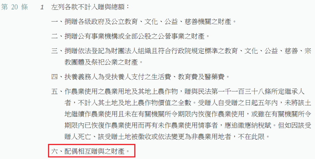 1.遺贈稅法20條1項6款,配偶相互贈與不計入遺產總額