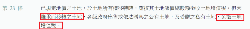 2.土地稅法28條,繼承土地免徵土地增值稅