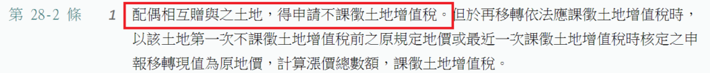 3.土地稅法28-2第1項,配偶相互贈與之土地,得申請不課徵土地增值稅