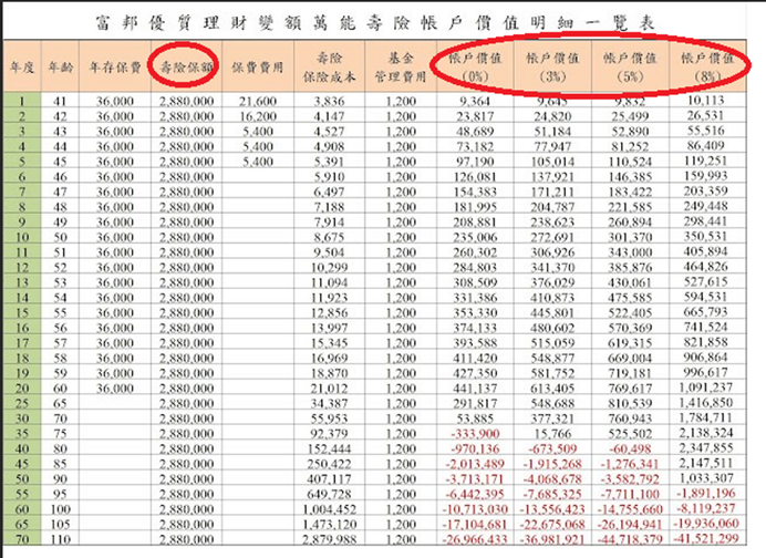 一部分拿去投資–就是表中標註的「帳戶價值」;