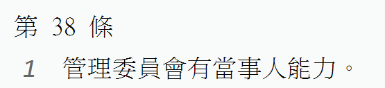 所以目前實務跟法規上,都是肯認管委會雖然不是法人而無權利能力,但在民事訴訟上,是有當事人能力的~~