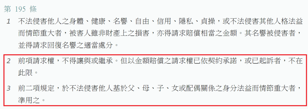2.要保人終止保險契約後,可以取回保單價值準備金的權利,並非一身專屬權:什麼是一身專屬權,就是這個權利除了你以外,別人都不能用,意思就是這個權利是不能讓與、繼承、代位的,例如像是民法195條慰撫金請求權!!