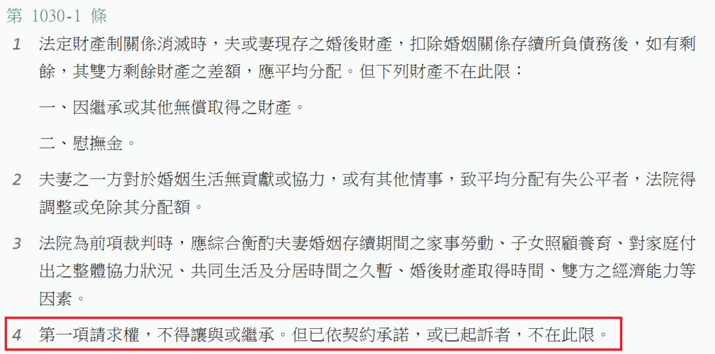 至於常讓人搞混的,是民法1030-1的夫妻剩餘財產差額分配請求權,因為原本是一身專屬,又修法變非一身專屬,現在又修成是一身專屬~~~不過這是題外話,讓你參考參考!!