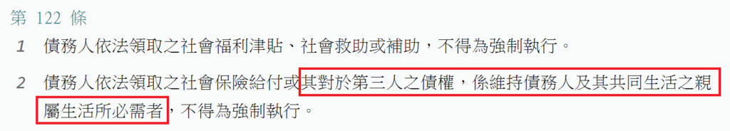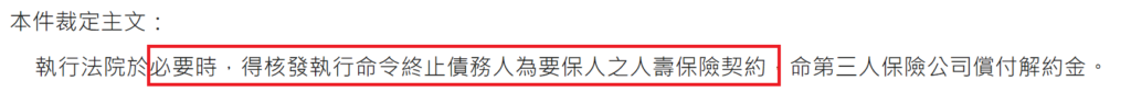 3.但大法庭也認為「執行法院於必要時,得核發執行命令終止債務人為要保人之人壽保險契約,命第三人保險公司償付解約金……於具體個案依強制執行法第1條第2項及第122條等規定,兼顧債權人、債務人及其他利害關係人之權益,為公平合理之衡量。」~~