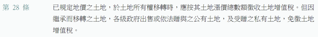 如果不動產是因為繼承而取得,因為已經有遺產稅,所以就不會再有土地增值稅~